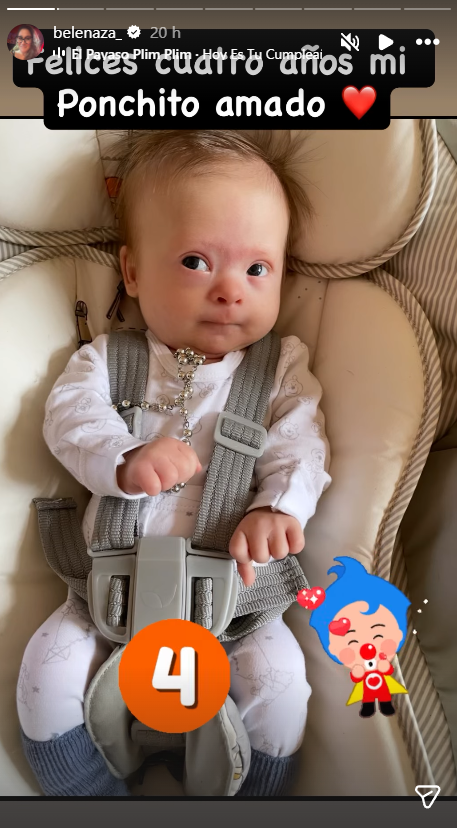 A través de las historias de su cuenta de Instagram la figura posteó una imagen donde aparece su retoño cuando apenas era un bebé, mirando tímidamente a la cámara y con su conjunto en banco. Sobre esta encantadora foto, la artista nacional dejó un breve mensaje, pero cargado de amor. "Felices cuatro años mi Ponchito amado", indicó.