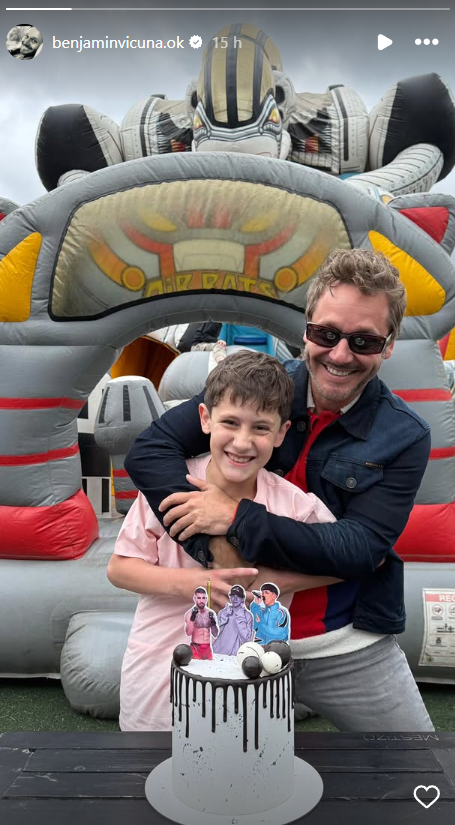 "Un niño que me sorprende día a día, con una pregunta, con un recuerdo, con una mirada de las cosas de la vida que me inspira. Niño valiente y feliz, qué suerte ser tu padre y descubrir pedazos de mundos de pájaros ruidosos y peces furiosos. Amo caminar a tu lado, un paso atrás pero siempre juntos (...) Gracias por enseñarnos a ser felices, a disfrutar de la vida como solo tú puedes hacerlo. Te amo, hijo. Quiero hacerte feliz", sentenció en su mensaje Benjamín Vicuña.