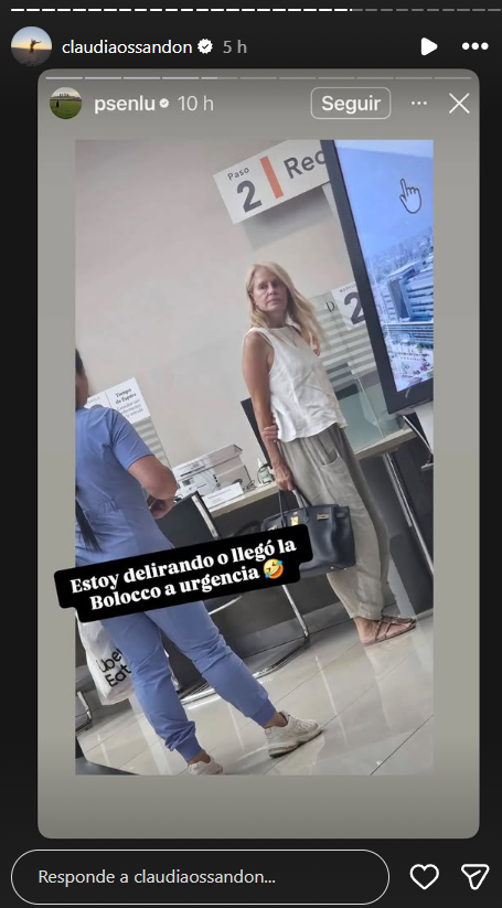 Junto a ello dejó capturas de pantallas de una seguidora que se encontraba en la clínica cuando comenzó a llegar la familia Bolocco para estar al lado de Rose Marie Fonck. "La mamá de ellas en urgencia, lamentablemente", escribió sobre una foto donde se ve a Cecilia Bolocco junto a su esposo Pepo Daire, que no dejó su lado en el momento tan complejo.