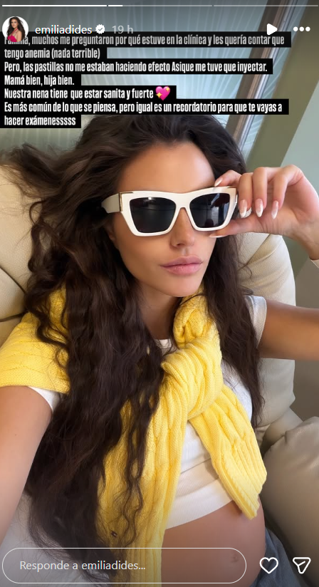 Resulta que los medicamentos que estaba consumiendo precisamente para evitar esto, no estaban funcionando como correspondía. "Pero, las pastillas no me estaban haciendo efecto, así que me tuve que inyectar. Mamá bien, hija bien. Nuestra nena tiene que estar sanita y fuerte", añadió Emilia Dides, explicando toda la situación.