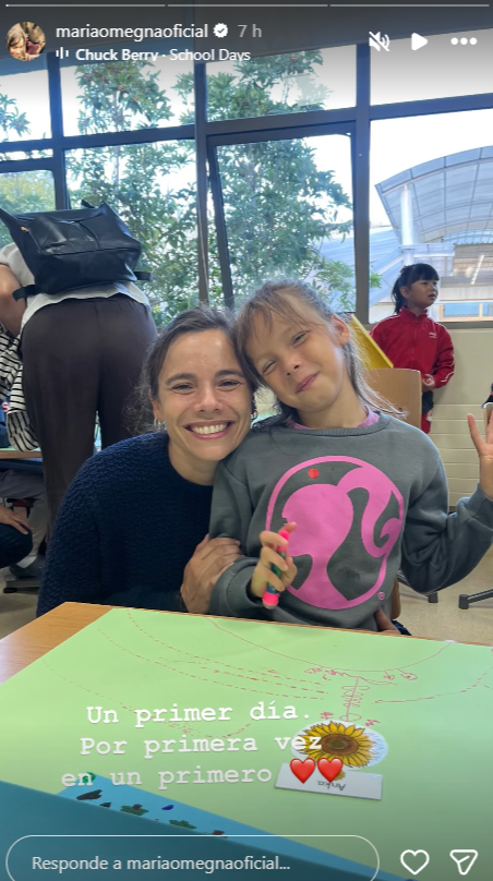 Una de las personas que publicó sobre este día, fue María Gracia Omegna. La actriz dejó una foto en las historias de su cuenta de Instagram, donde aparece en el primer día académico de su hija Anka, que nació de su relación con Gonzalo Valenzuela. "Un primer día. Por primera vez en un primero", indicó la intérprete sobre la imagen.