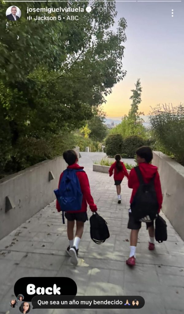 Y entre los papás que mostraron el regreso a clases por partida múltiple, está José Miguel Viñuela. Antes del fin de semana, él ya había posteado un video donde le advertía a sus hijos que en este nuevo ciclo escolar esperaba que no perdieran nada, así que en la foto que publicó este lunes, se ve a sus tres hijos mayores con su uniforme impecable camino al colegio.