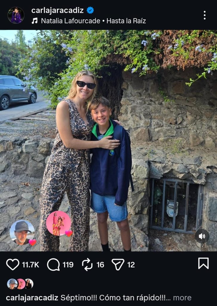 Carla Jara en tanto se sumó al boom de publicaciones de este lunes. La animadora compartió una foto donde aparece posando junto a su hijo Mariano, quien está a su lado radiante y sonriendo. "Séptimo!!! Cómo tan rápido!!! Este año la foto fue en la puerta, cada vez puedo entrar menos. Que sea un hermoso año escolar mi Mariano y para todos sus hijos e hijas!!! Vamos con todo este 2026!!!", indicó.