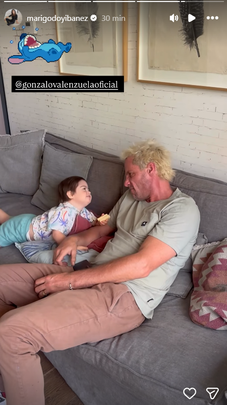 Pero el cantante no fue el único que disfrutó de la ternura de Domingo, pues Godoy posteó un video en su red social donde aparece Gonzalo Valenzuela en un sillón, mientras que a su lado y de guatita está el niño jugueteando. En un momento y ante la respuesta del actor, el menor de edad termina riendo, lo que saca carcajadas en todos los presentes.