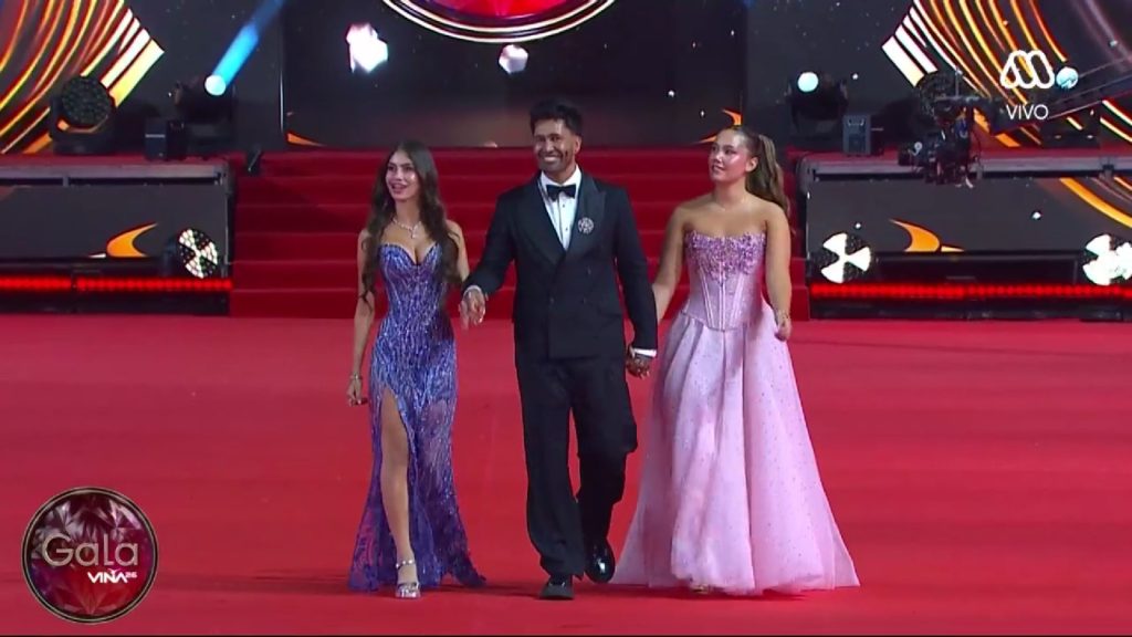 Y luego el comunicador se dirigió a Raffaela para consultarle cómo vivía el momento. Con una sonrisa tímida tal como su hermana, la joven solo dijo que decidió aceptar la invitación de su padre, y por eso estaba esta noche en Viña del mar. Acto seguido Luis Jiménez y dos de sus retoñas continuaron su camino tras robarse los aplausos.