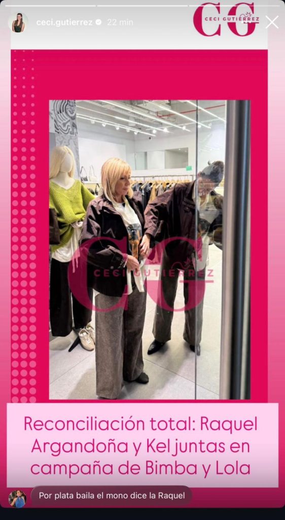 "Reconciliación total: Raquel Argandoña y Kel juntas en campaña de Bimba y Lola", escribió la panelista de Hay que decirlo de Canal 13 junto a la postal donde aparece la animadora de Tal cual de TV+ mirándose al espejo y su hija al costado.