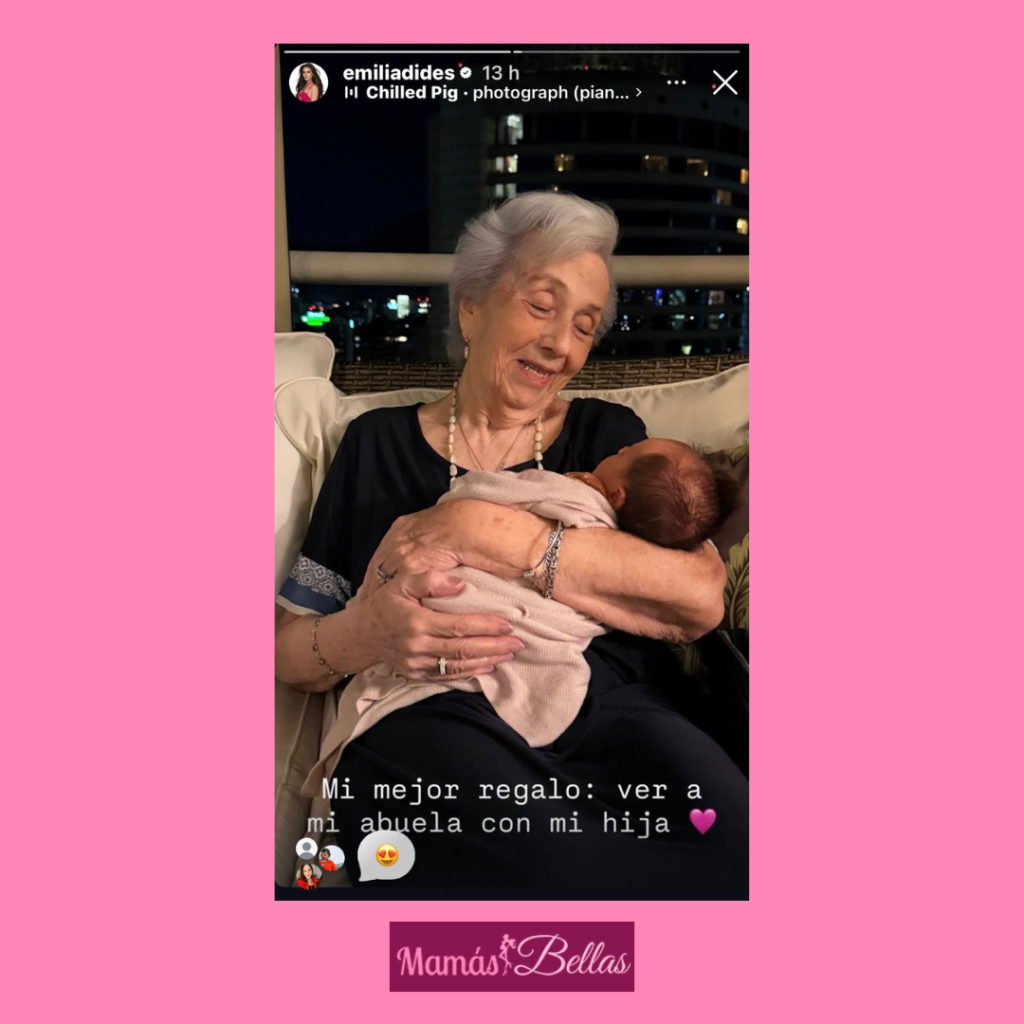 Y es que Emilia Dides compartió una fotografía en sus historias de Instagram con la siguiente leyenda, "Mi mejor regalo: ver a mi abuela con mi hija", y en esta se puede apreciar como ambas mujeres de distintas generaciones se miran fijamente.