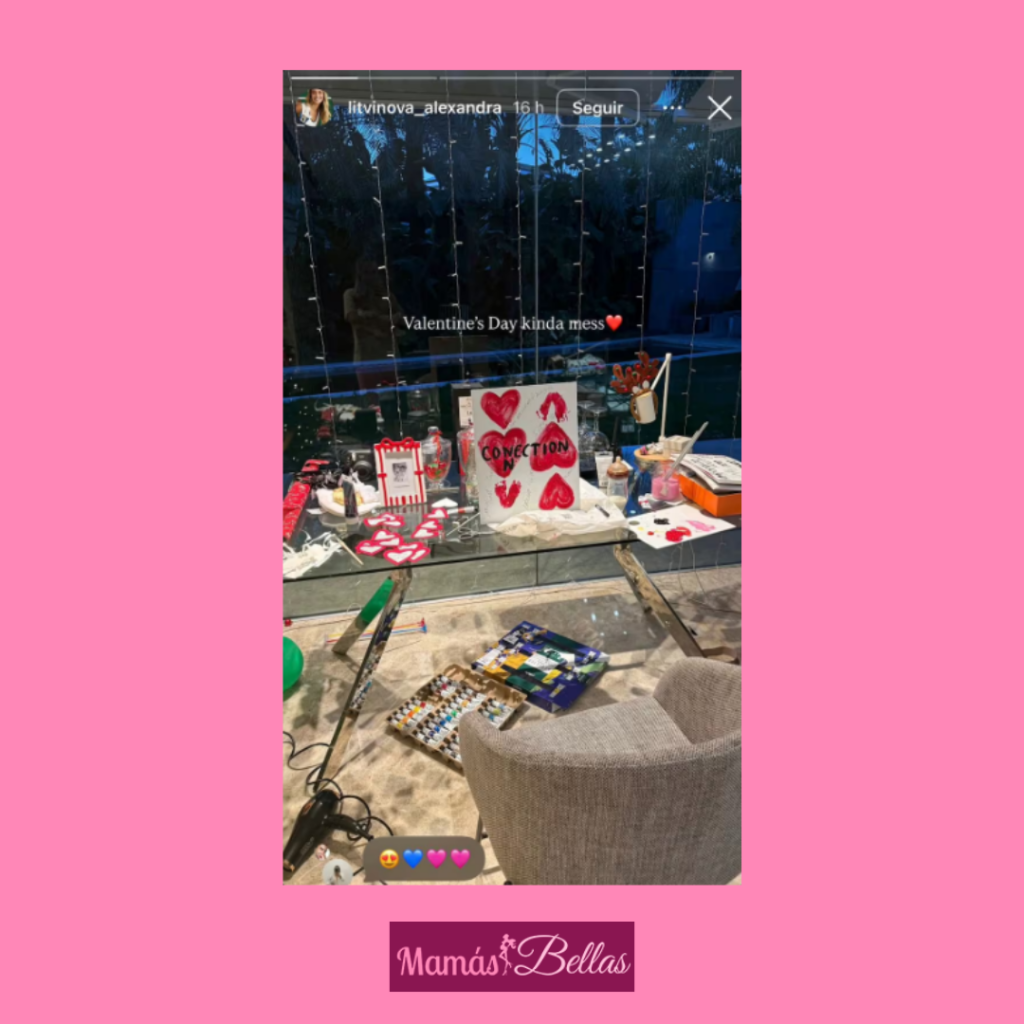 Se trata de un cuadro de corazones que Alexandra Litvinova realizó con sus propias manos y también ocupando los pies de Bella, en el cual escribió al medio la palabra Conexión y eso no fue todo, pues armó una guirnalda de corazones con fotografías y frases de su historia de amor con Alexis Sánchez.