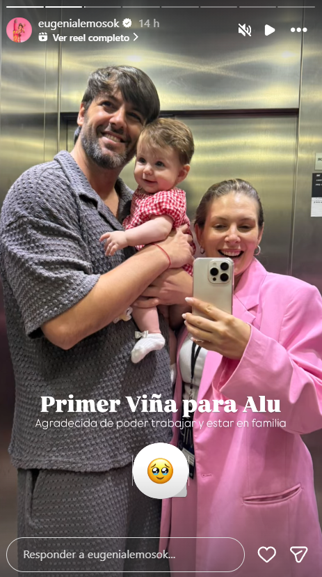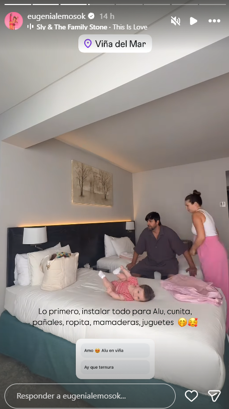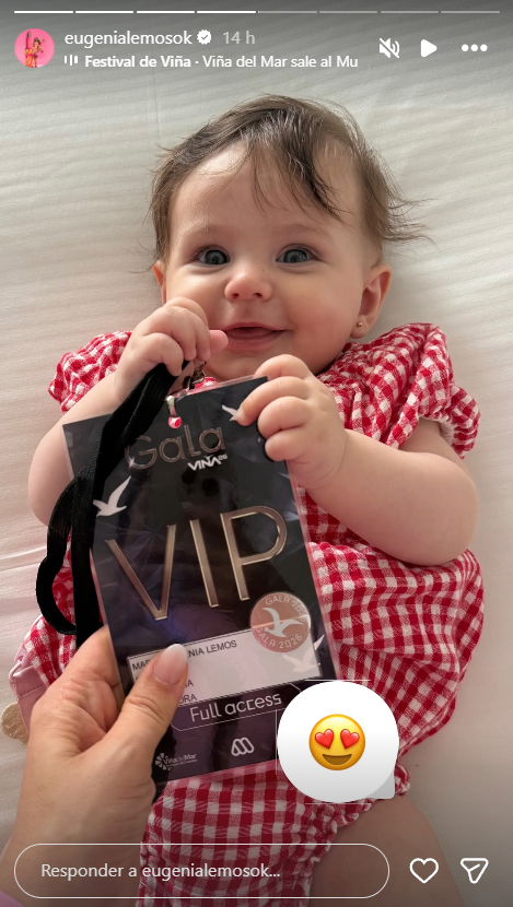 Más tarde Eugenia Lemos posteó otro video en el que se les ve ya en la habitación del hotel que los recibirá durante estas jornadas. Ahí instalaron la cuna de su bebé y todos los implementos necesarios para pasar unos días de trabajo y tiempo en familia. En tanto que una tercera postal, y la que derrochó ternura, fue de Alegra con el pase de la gala de Viña en sus manos.